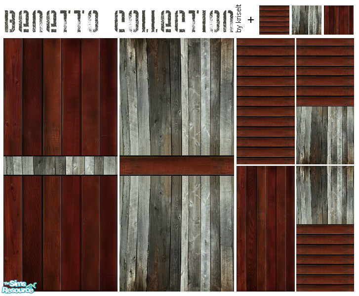 This set include 6 wood walls and 3 floors. All created with real wood textures. Decorate your house!~ :)