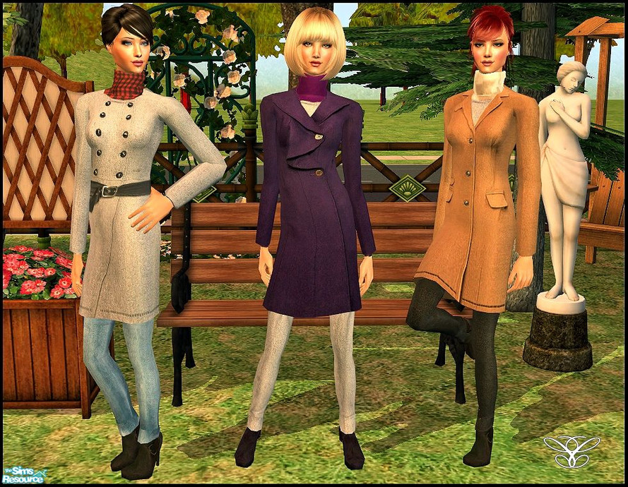 3 coats for female adult sims. Don\'t forget to download the required mesh by Glamorous Lounge which can be find on page 6 of the female casual section! Season required! Happy simming!