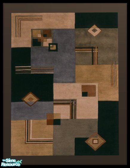 An abstract of black, blue and tan squares. Give your room a modern look with this nice rug. You need the mesh at the link provided. Textures also work for the 2x3 rug.