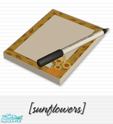 Notepad featuring potted sunflowers with black pen.
