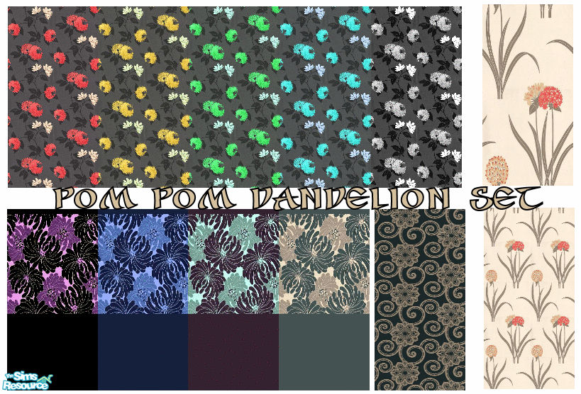 A multi-coloured array of big pom pom/dandelion designed flowers