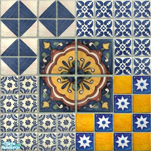 The final spanish tiles collection with even more color! Brighten up your Sims' homes with thse nice lookin' tiles. Enjoy.