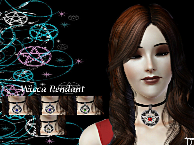 Forget the evil things when you see a wicca pentagram, the 5points of the star stands for the 5 elements and not for evil doings. The elements: fire-red, water-blue, earth-green, air-yellow/grey and spirit-purple.