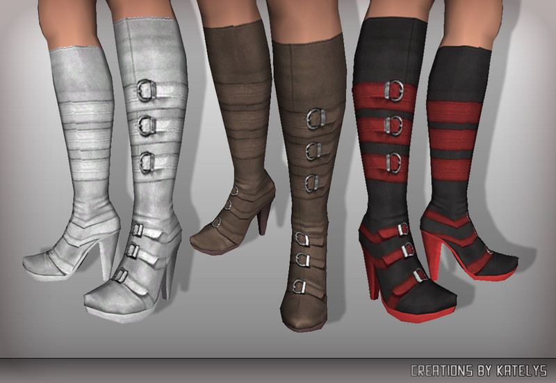 Classic high-heeled boots for adult and young adult women. Edited mesh. 3 recolorable palettes