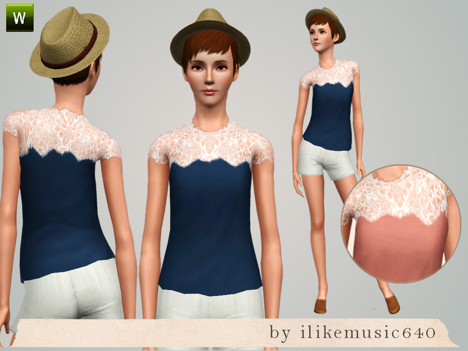 Top only, recolorable with two channels. Lace detail on top is slightly sheer.