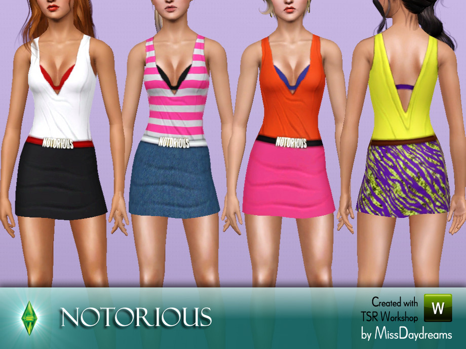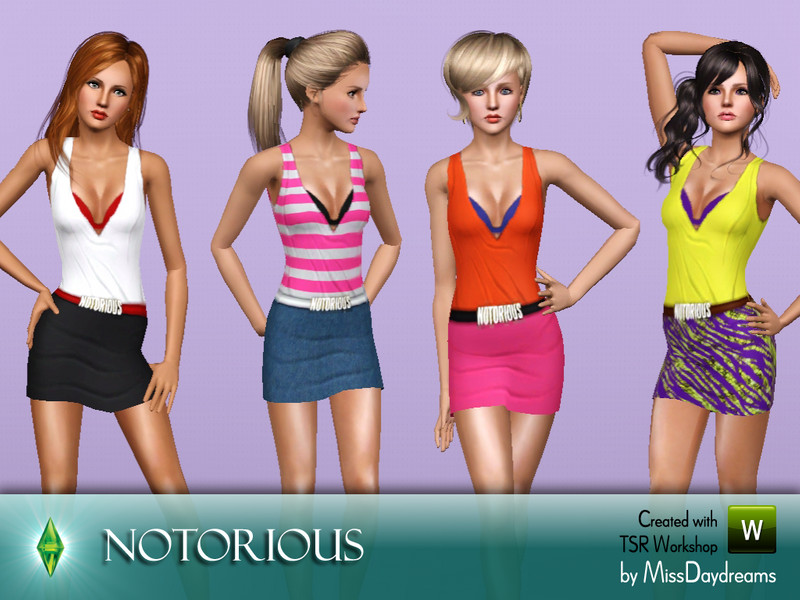 This mini dress is inspired by an outfit worn by one of The Saturdays member - Mollie King in the 'Notorious' video-clip. Sexy look and vivid colours! Now your Sims can be notorious too! ;)