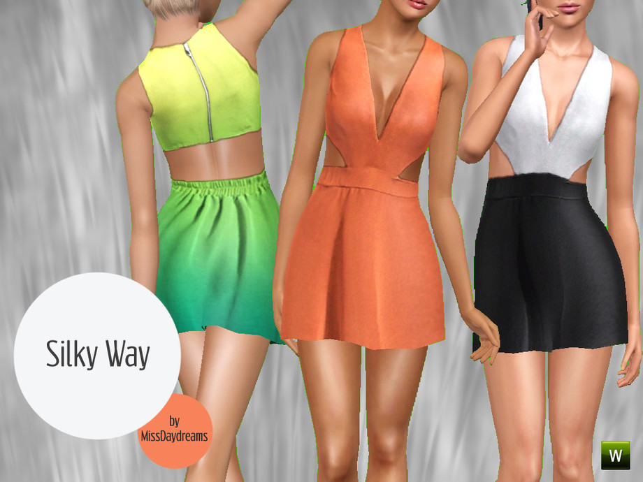 Silky Way is a simple and comfortable but still very fashionable dress, which cutouts and deep V-neckline highlight the womens' silhouette. 2 designs: ombre and plain.