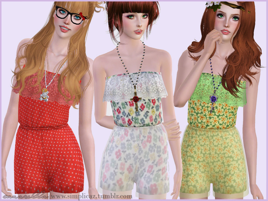 A cute little playsuit for your female adult sims. 2 versions included in the Sims 3 Pack, one with the chiffon shorts layer and one without.
