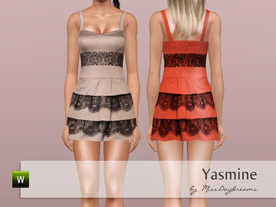 Yasmine is an elegant formal dress which shiny texture contrasts with lace layers. Hope you like it...