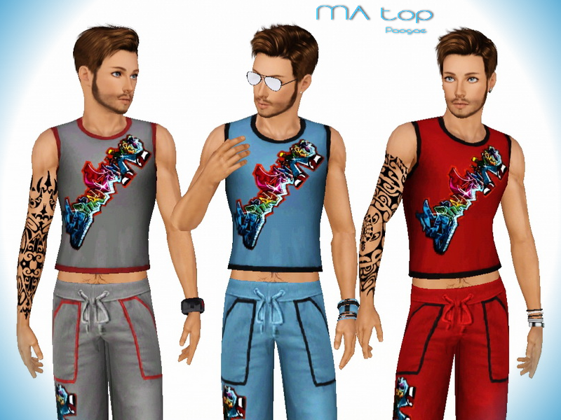 Funny sleeveless top for your male simmies, with colored print, for sport or spare time.