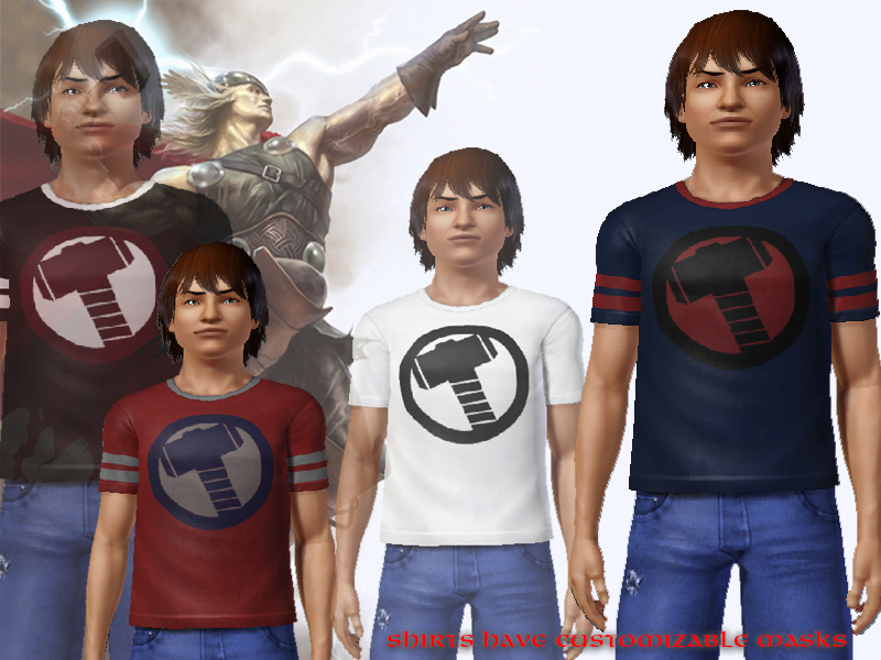 This shirt pack includes six different style Thor shirts, as well as a mask you can use to make custom shirts.
