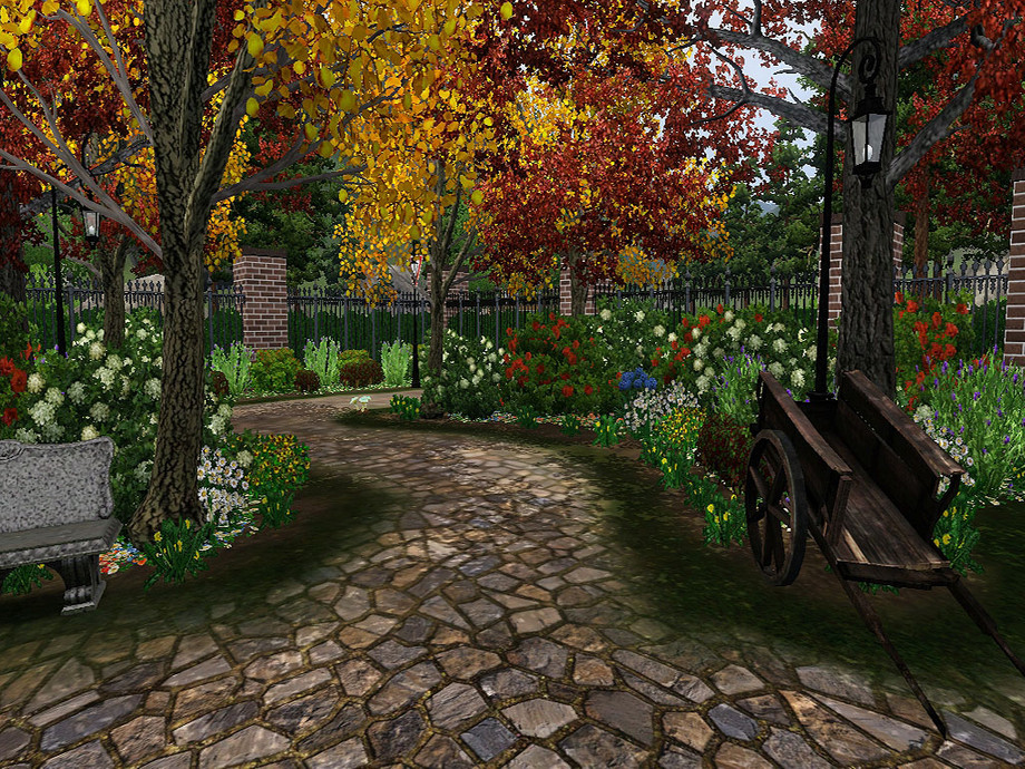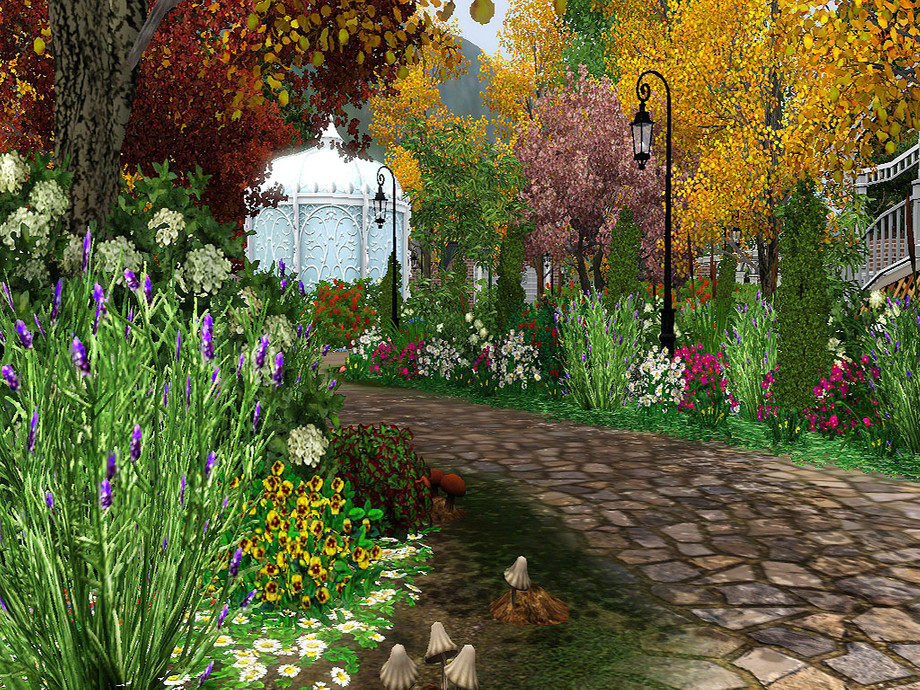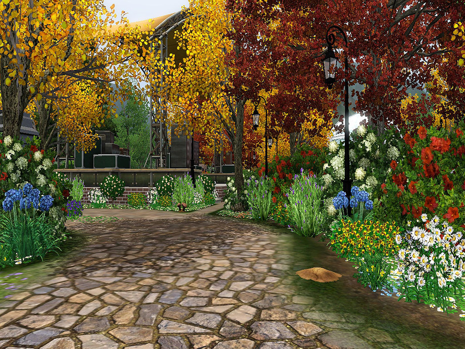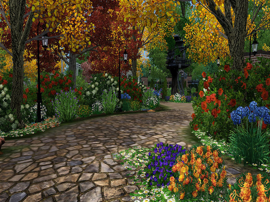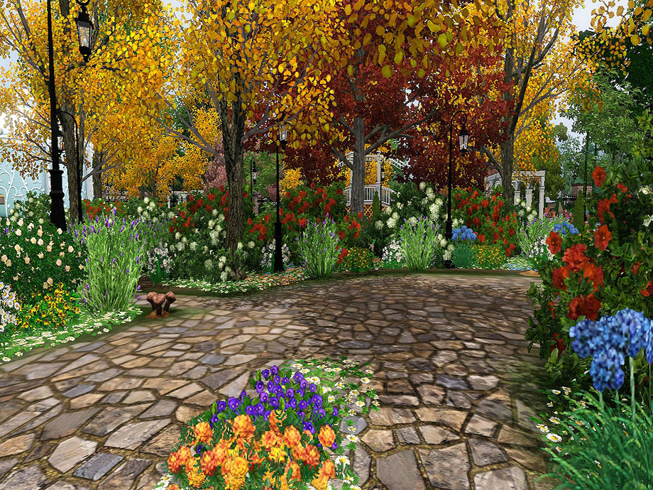 This was just one of those community lots that needed some lift! It's up to you whether you use it as a big park, supernatural hangout or live show venue; it fulfills the requirements for each! I've added a number of spawners, ranging from insects to turtles, fish and gems. There is a playground, carpark, public toilets, fairy arborteum, lake with a tiny pier to fish off and bridge to cross, mushrooms, picnic tables, bbqs, and nooks and crannies filled with seats, bursting through autumn-themed landscaped gardens.