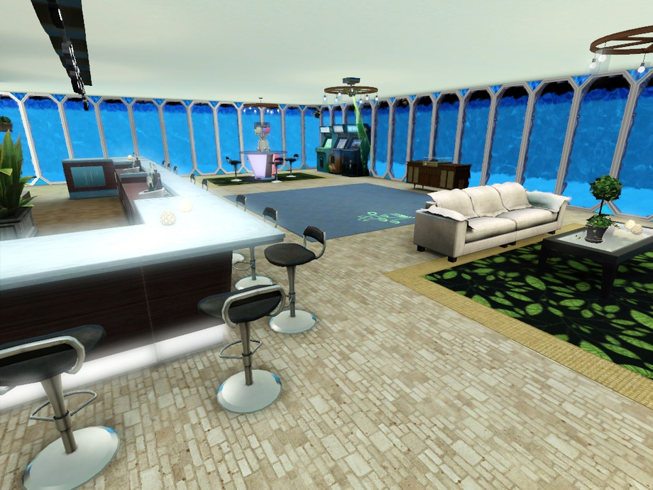This resort has a lobby, small gym, wedding chapel, and resort towers aboveground. There is a dance club/lounge/bar in the first basement (aquarium) and a restaurant in the second basement.