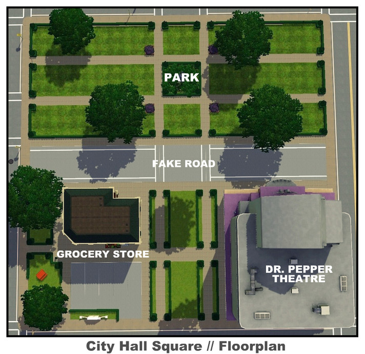 [] Apart of the Sunset Valley Remodeling Project [] City Hall Square is one of Sunset Valley's newest parks. It features a fake road, a theatre, a lovely (yet small) park and a small grocery. It's rumored that you can find all sorts of rare things just laying around here...