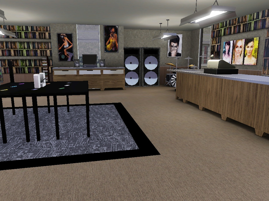 a fantastic music store for your sims to hang out. 3 floors. first floor fully decorated with tsr developers items. access to public transportation, subway. and bus stop. landscaped. above floors ready for alteration or left for visual impact!