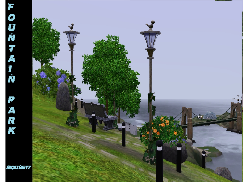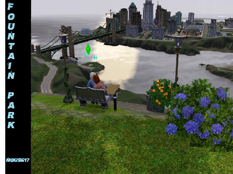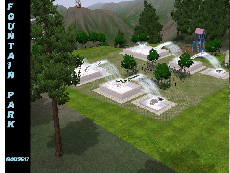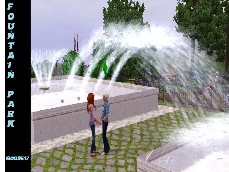 Fountain park is a wonderful place to take your family for a great afternoon. The park includes a playground for younger sims, multiple chess tables for a quiet game with friends or to get in some practive before a big match. Need a nice peacful place to take a date? Fountain Park offers a few secluded benchs for a romatic evening!