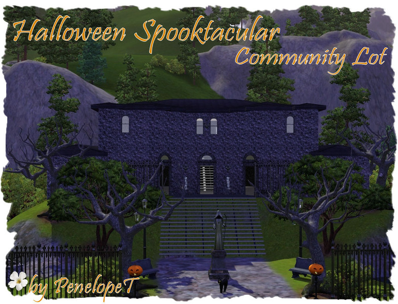 This community lot is the perfect place to party for Halloween. Place it next to my 'Ancient Burial Grounds' community lot for a little added fright. Includes a buffet and bar area, outside sitting area, small pond and a cozy little spot for your Sims to sit and watch their favorite horror movie. This is also a great place for the Goth's in your neighborhood to hang out. Enjoy ~ PenelopeT