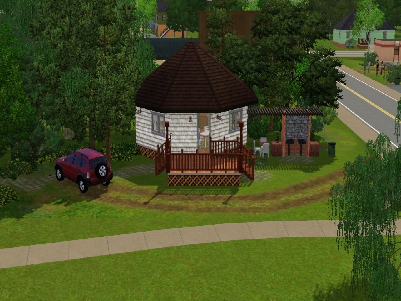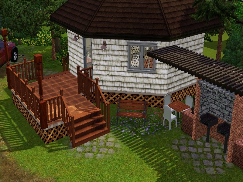 I made this bungalow to go together with the caravan camping theme. Built on a 20 x 30 lot near the river for lots of fishing for your sims. Bungalow sleeps 4 sims and is perfect for a family with 2 kids. Lots of shade under trees and a nice outdoor BBQ with table and plastic chairs.