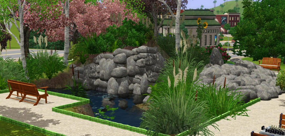 This small park features a lovely pond surrounded by beautiful trees and flowers. This is the perfect place to escape the hustel and bustle for a few hours with a book on the grass, or snuggled up on a bench with that special sim.