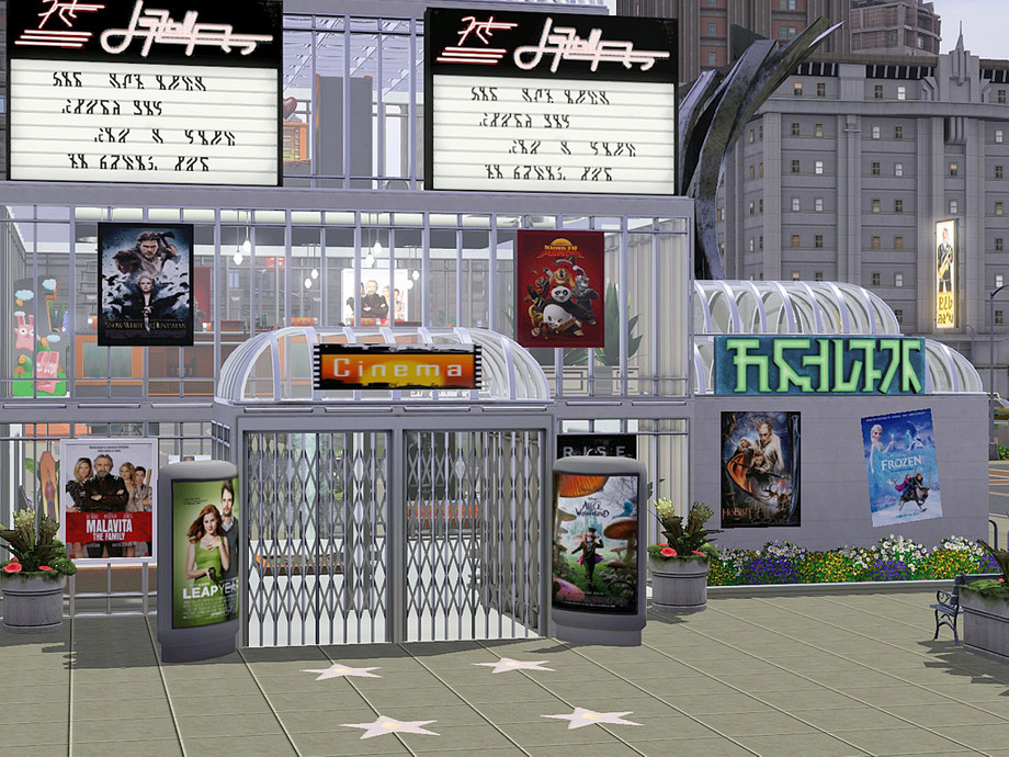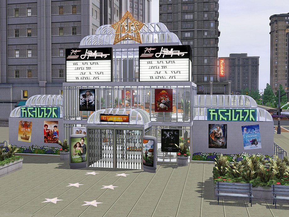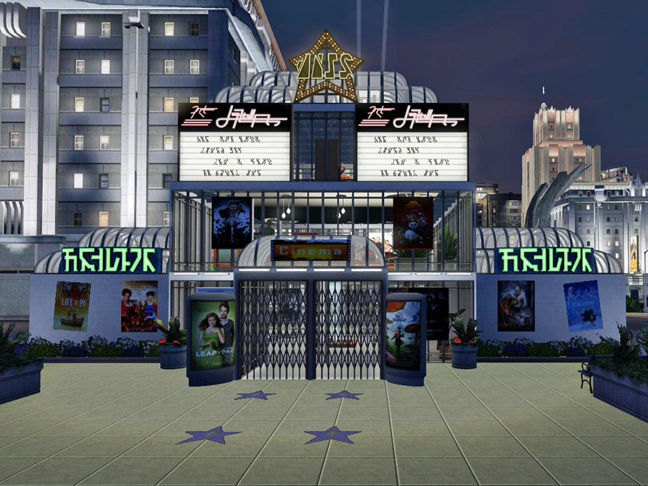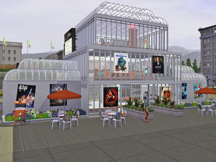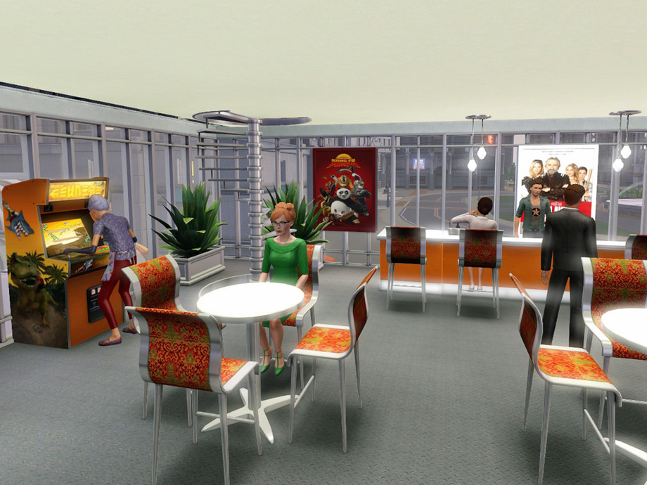 This is a new cinema for your town or city. The cinema has 2 screens, a bar and a coffee bar, outdoor dining, some arcade games and foosball. The restrooms are in the basement.