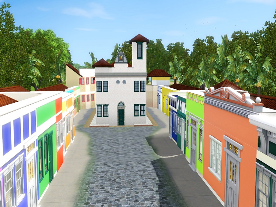 This lote is a cultural city in Brazil called Olinda. There has a wonderful street carnaval. It has a nice bar where The Sims can to meet their friends, two bathroom around the build, a museum room with antiquates objects, restaurant, and a church. Your Sims will be very happy to visit it.