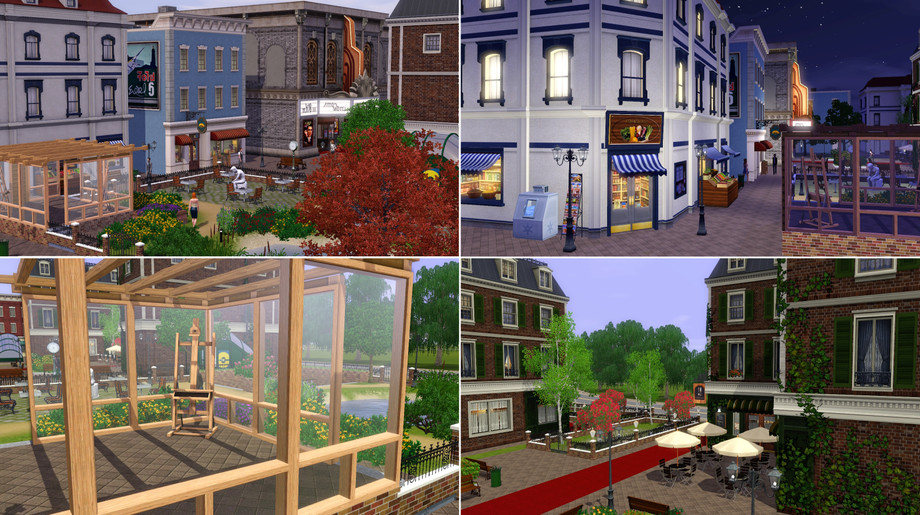 A nice community lot where your sims can enjoy the renovated buildings that came with the base game.