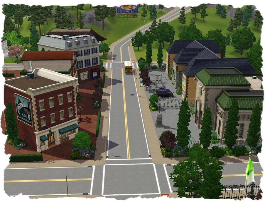 This lot is part two of my consolidation of the 'rabbit holes', and decluttering of Sunset Valley. This lot should be placed where the Bookstore, Theatre and Grocer were originally located. If you have not downloaded my 'Sunset Ave. Shopping District', I would recommend it as well.