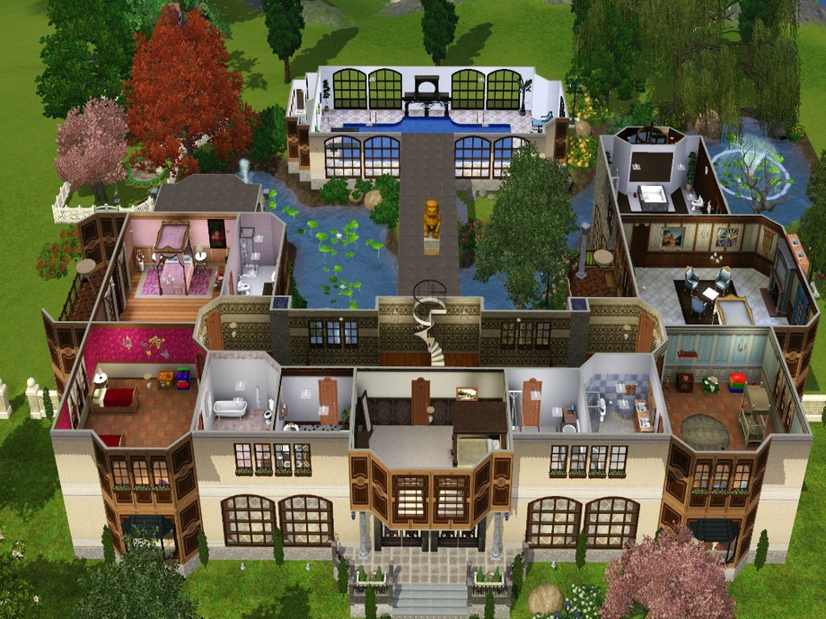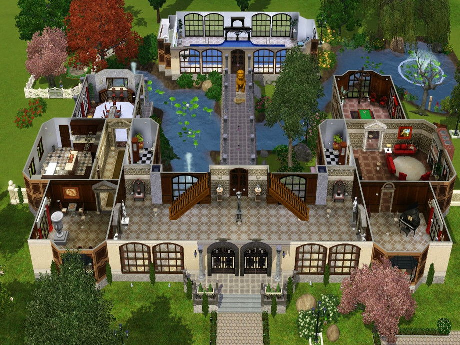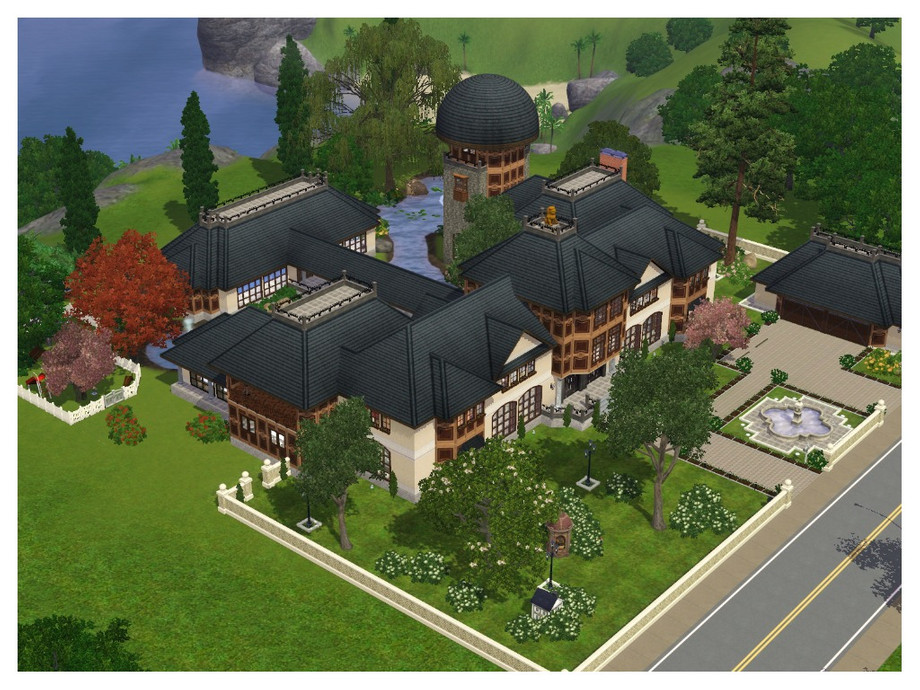 On the same level of the first floor is the covered pool, accessed by a bridge over the lake. The garage is big enough for 4 or even 5 cars, but it was projected for 3, and two extra vacancies outside. Inside the garage there is a stair to underground, where there is a gym, bathroom and a extra room for whatever you want. In the backyard there is a childrens park with many options for the kids. I had some problems to furnish the house because i dont own many expansions and i couldnt use many custom content to respect the 30 mb limit. I hope the house reaches your expectations and you can have lots of fun there. If you like it, leave a comment, it will be great to know that someone liked this house, the second one in classic style i built. Sorry for my bad English, im from Rio, Brazil. Please dont repost my creation :)