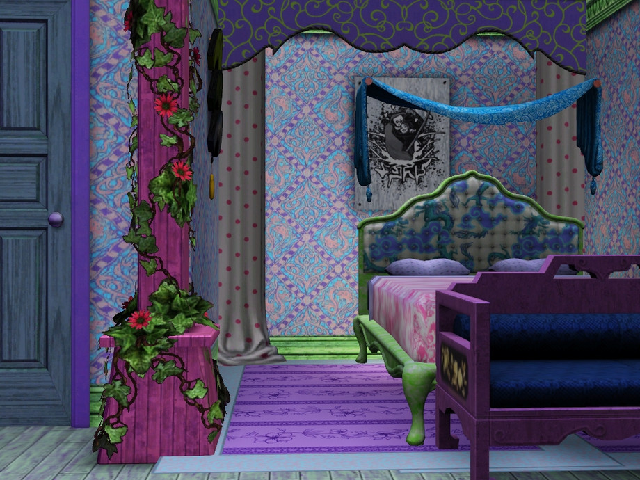 This cottage is designed for those 'crazy' Sims, who just want things in life to be a lot brighter, and more dramatic. Wild in colours throughout, it will really stand out in the neighbourhood and get Sims talking!