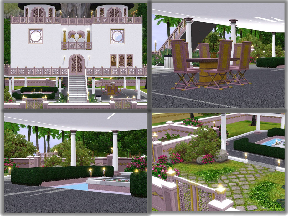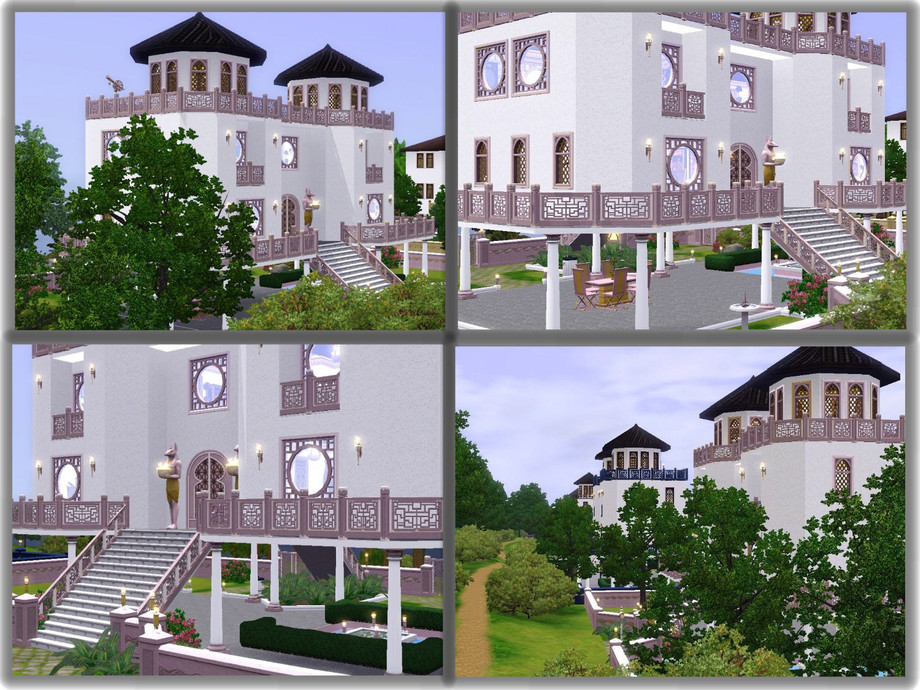 This is the sixth residential lot for my world, Pandora. This beautiful home has a garden, a pool and patio dining. The first story has a small entrance foyer, a living room, a galley eat-in kitchen and separate dining. The second floor has the master bedroom with full bath. The third floor has two little rooftop gazebos. One is an art room, and the other is a chess room. There is plenty of beautiful observation deck for gazing at the stars or for just viewing the ocean.