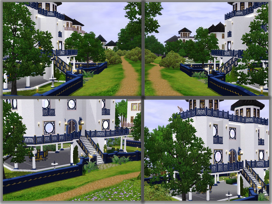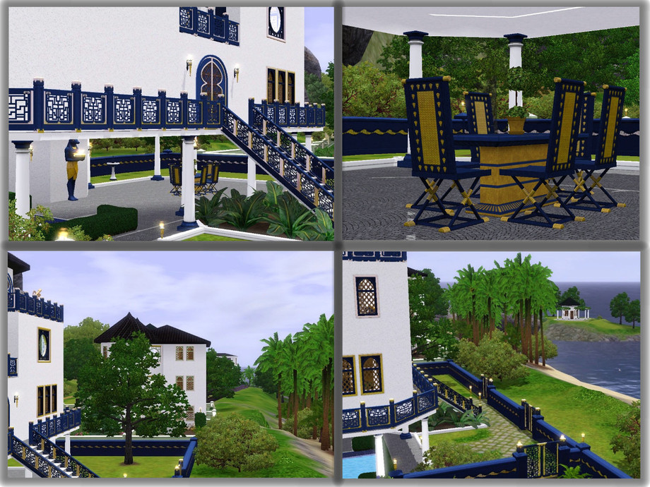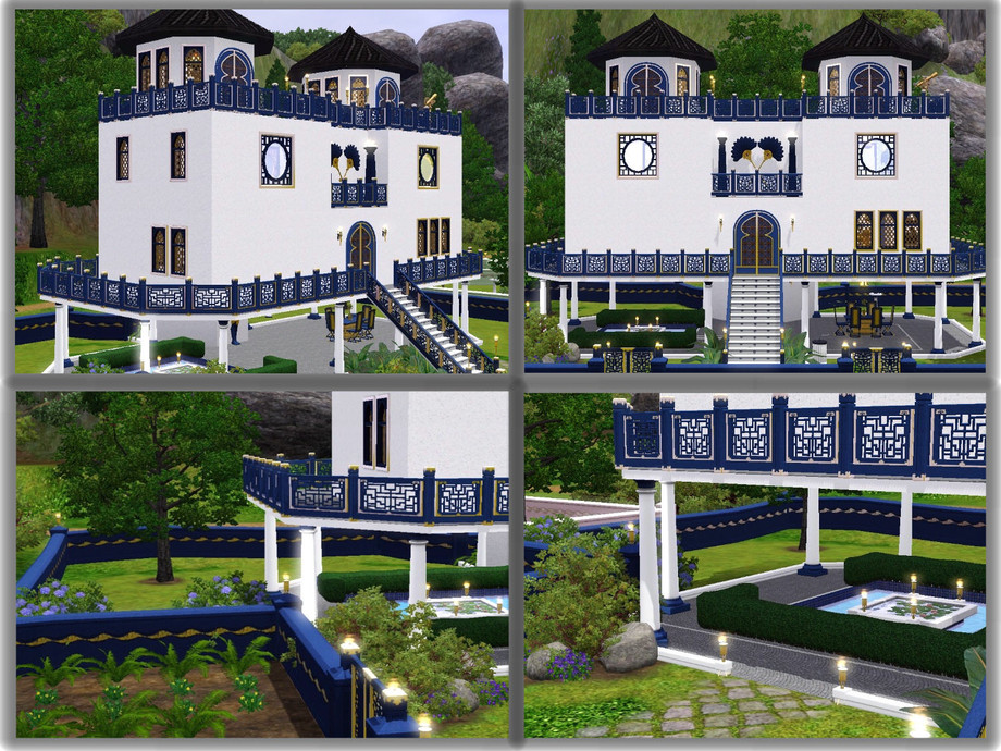 This home is the eighth residential lot offered for my new world, Pandora. Like the rest of the lots, this home has a pool, patio area and a garden. The second floor has a small entrance foyer, a living room, a galley kitchen and a separate dining room. The second floor has a master bedroom and bath. The observation deck has twin gazebos. One is a chess area and the other is for art.