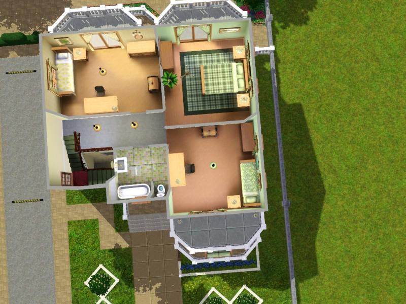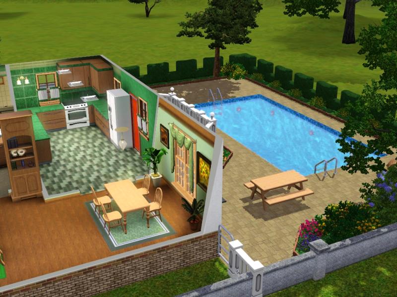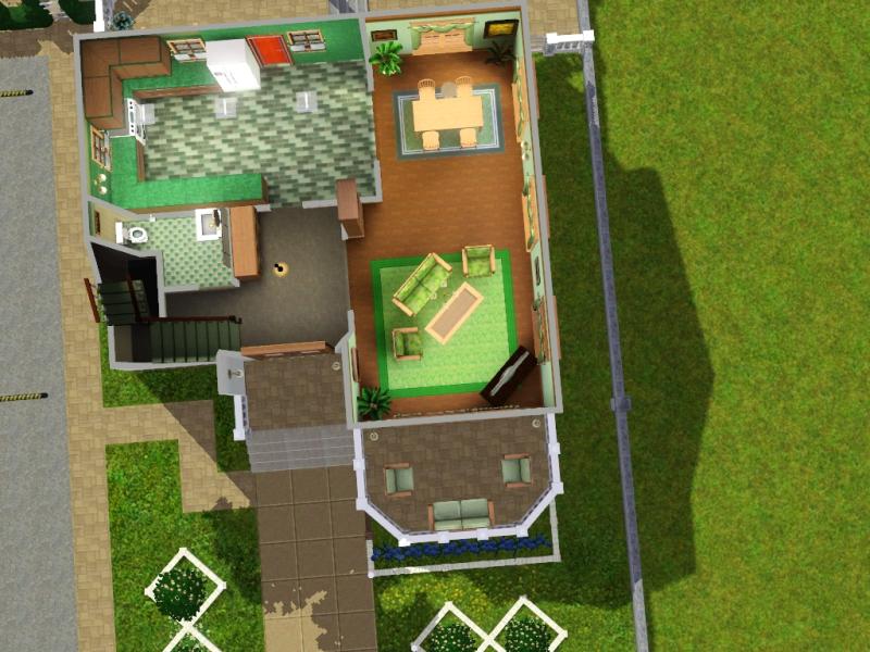 Pretty little home for your sim-family. It offers on the first floor kitchen, dining, livingroom and a bathroom. On the second floor are 3 bedrooms and a bathroom as well as a balcony on the frontside and two balconies backside. The nice landscaped garden has a little patio with grill and a swimmingpool. Beside the house are two parking areas. Enjoy!