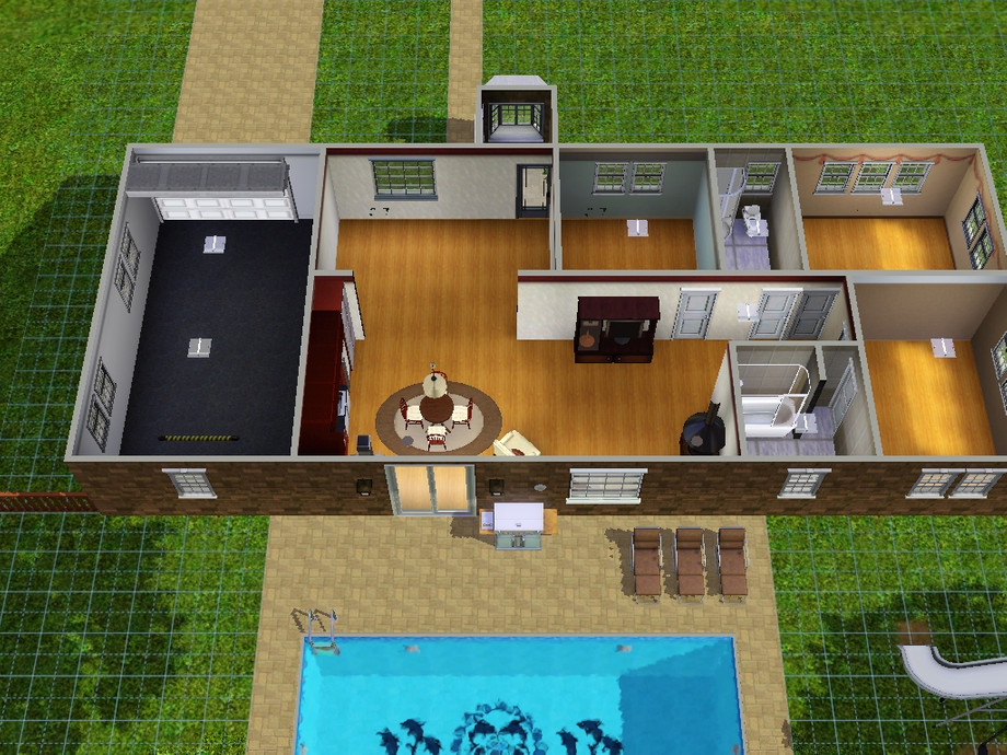 A wonderful 3 bedroom 2 bath ranch home with open kitchen and den with attached garage and pool as well as master suite for your growing middle class sim 3 family a really great brick home!