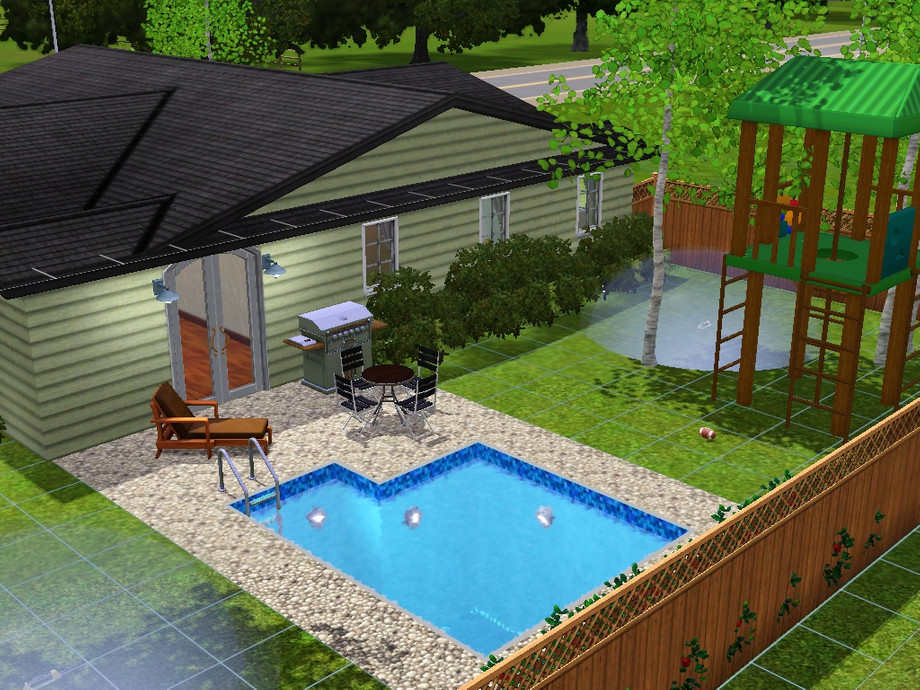 A 3 bedroom 2 bath home complete with master suite with walk in closets,attached garage,pool,gardens,and play area.Just a wonderful home in a safe neighborhood to raise your growing sims family.