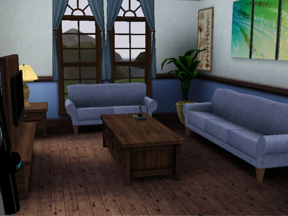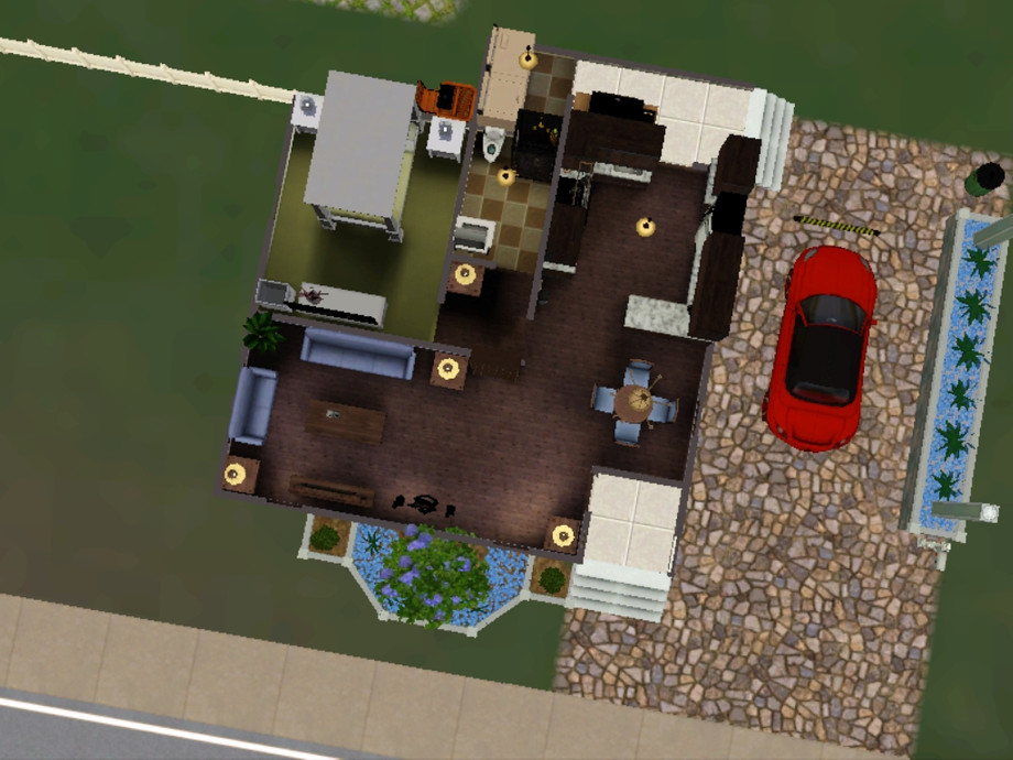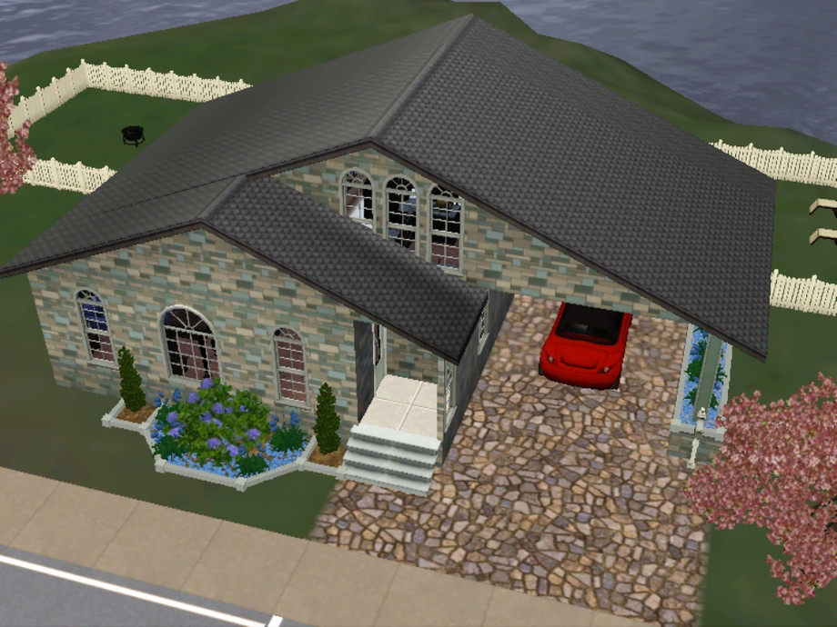 This house is a spin-off of GiveTheNineARide's The Woodstone Starter. This 1 bedroom, 1 bath is perfect for a newly wed couple or single sim looking to find their soul mate. Some features include a roofed car space, washer and dryer, hot tub, a close view of Bridgetown's river, and plenty of windows and lighting for your sims!