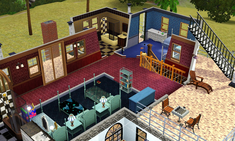 An original Sims 2 design with a major modification and also my design. The original Curious Home from Stranetown. House now has two floors. Contains a Gararge, Living Room, Dinning Room/Study, Kitchen, 3 Baths, 4 Bedrooms, great for a large family, and plenty of senic views of Riverview. Built on lot 1 Remington point.