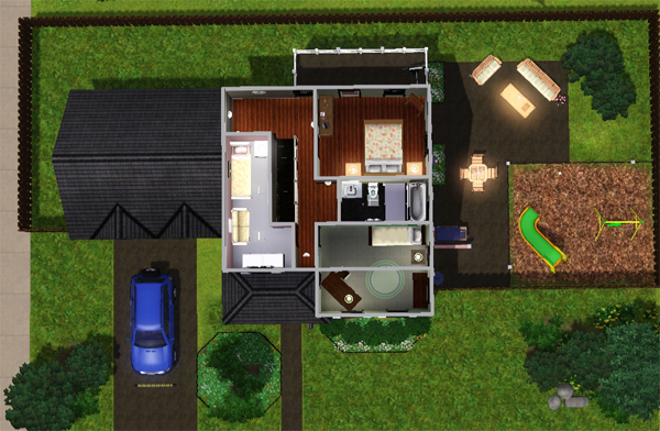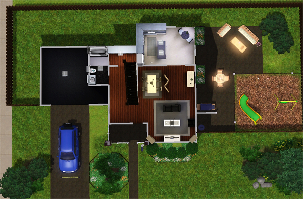This three bedroom, two bathroom home sits on a medium sized lot. It is fully furnished and landscaped throughout just waiting for your sim family to move into. There is as always ample space for you to construct whatever you need and a premade room is available for your laundry. Add a pool? Playground? Hot tub area? Wedding garden? Whatever you need, whatever generation you're playing. Feel free to enjoy the lot but remember - no re-uploading.