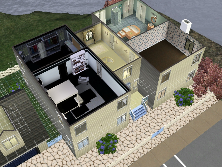A luxurious 2 bedroomed house. Features a walk in closet in the master bedroom. Perfect for the sim with to much clothes!Also has one main family bathroom, study, living area and a kitchin with breakfast bar and a seperate dining area.