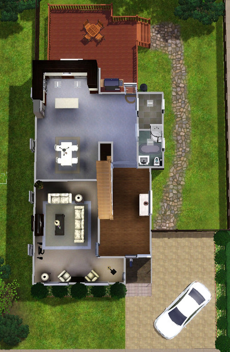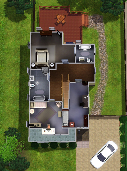This 3 bedroom, 3 bath house is ready for your suburban family. Built on a small 20x30 lot it has everything your family needs. A huge living room, dining/kitchen and back deck as well as an unused laundry room. There is, as always, room for expansion above and below . This home is massive and would be great for a daycare. =) Please note the car is in place with the moveobjects on cheat. Thanks !
