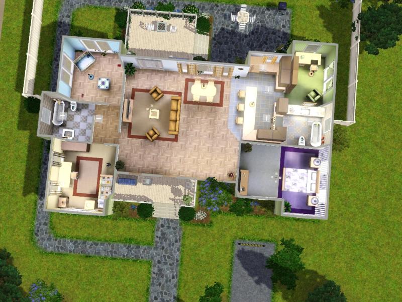 Cozy little home with 3 bedrooms and 2 bathroom. It is furnished with all things your sims will need. The pretty landscaped garden has 2 terraces, one with grill as well as a lot for your car. Enjoy!