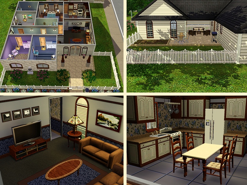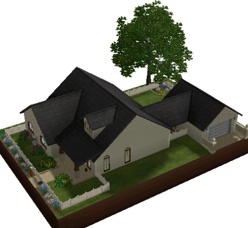 Mid range in price, but high in style, this house will strike the right buyer. Will it be your sims? Features 4 bedrooms 2 bathrooms, kitchen with eat in dining and moderate sized livingroom. Includes a small flower garden and garden plot for growing food.