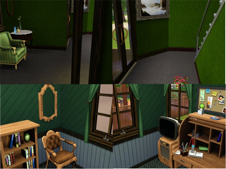 This lovely house comes with a very nice living room with bright colors, to match that perfect view! With a very nice study with an antique computer, your sim will have a little piece of luxury, and feel like their living by the beach! You never know which room will surprise you!