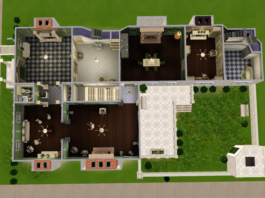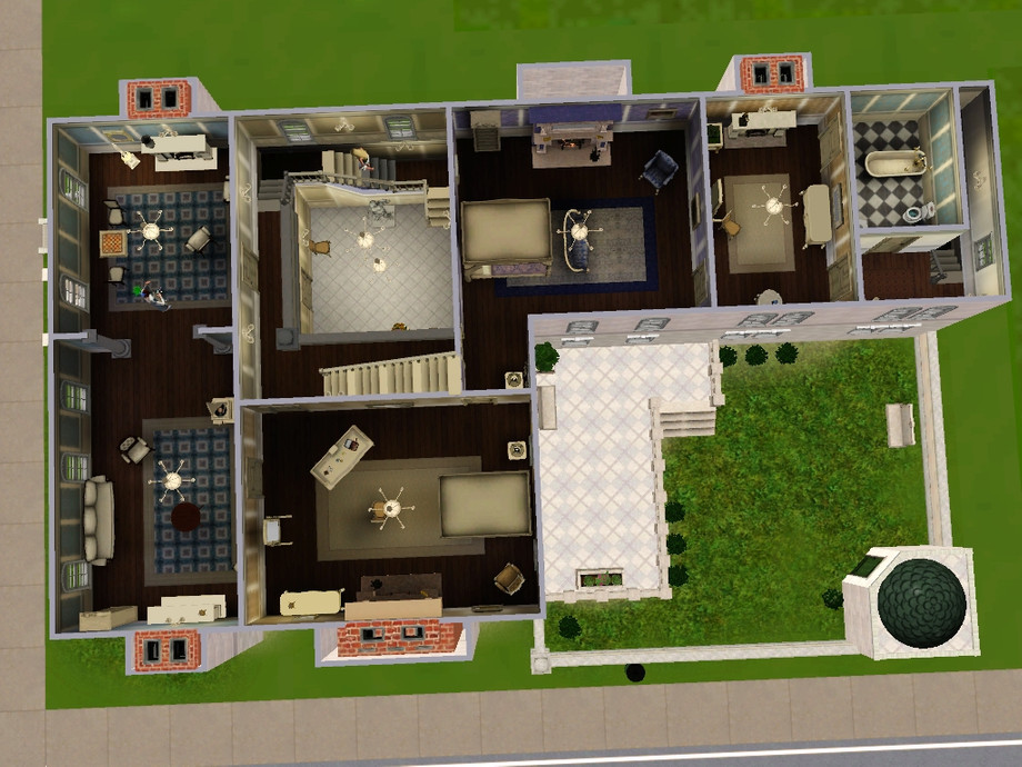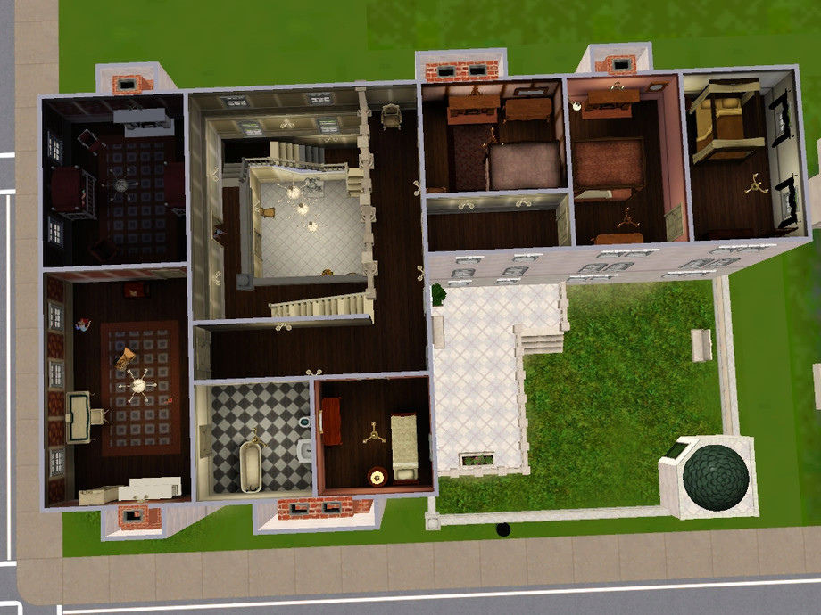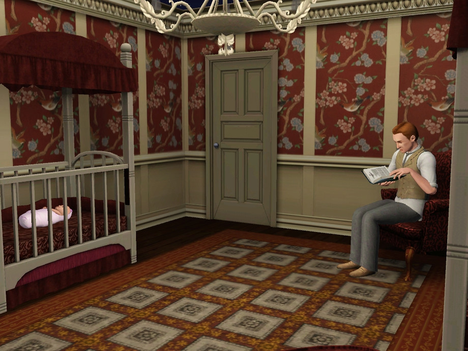 A large Georgian town house, expensively furnished. Room for the whole family and a few friends, with two large bedrooms on the first floor, and the nursery and three bedrooms on the second floor. The kitchen and servants rooms are in the basement. On the ground floor are the dining room, library, and a large saloon for entertaining. The drawing room is at the front of the house, on the first floor. Behind the house is a fine terrace and yard.