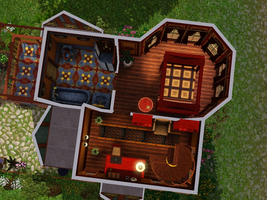 When ole Capt'n Mc Cooley retired, he build a house on the riverside of Riverview. Since the noble old cruise ship was set out of order together with him, he used the parts of the ship to build his house. From Floor, doors and windows up to the furniture, every single piece of his house is a part of the noble cruise ship Lady Steampunk, the ship he was commanding for so many years. Its a fully furnished home with a fully planted garden and skillbuilders, perfect for a single sim or a couple. In case of offspring, there is the option to use the top floor as a kids room instead of a billard lounge.
