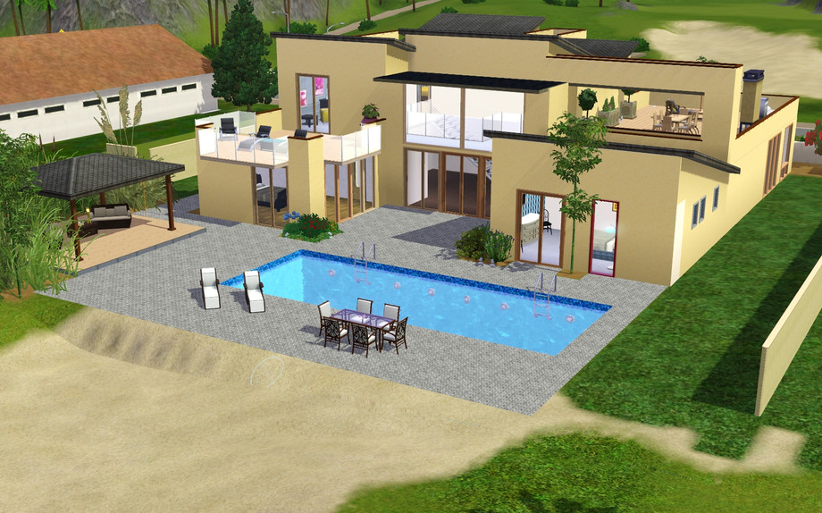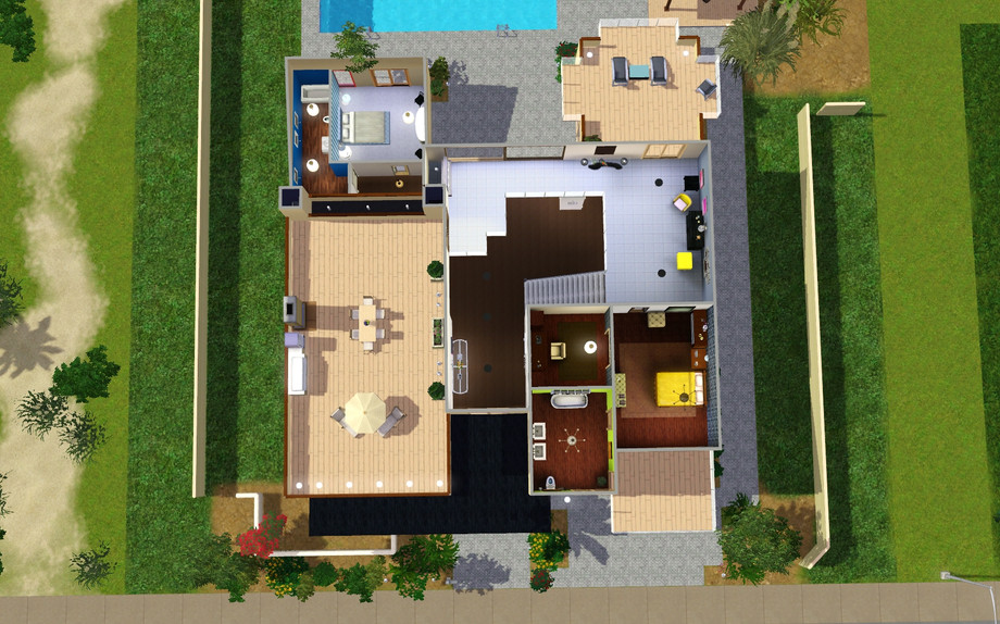 The clean and contemporary design is accentuated with articulated extended eaves that provide solar protection at key areas of the home. Abundant use of sliding and folding door systems provide a seamless transition to a center courtyard and patio areas inviting indoor/outdoor living. Sims alike will enjoy the dynamic and green living functions of the Acacia.