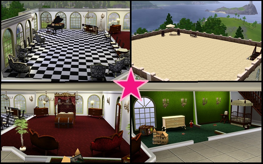 On this floor there is a large master bedroom, childs room and nursery and a large ballroom with a bar and piano. One last set of stairs takes you to the roof of the Manor which has ample room for relaxing in the sun.