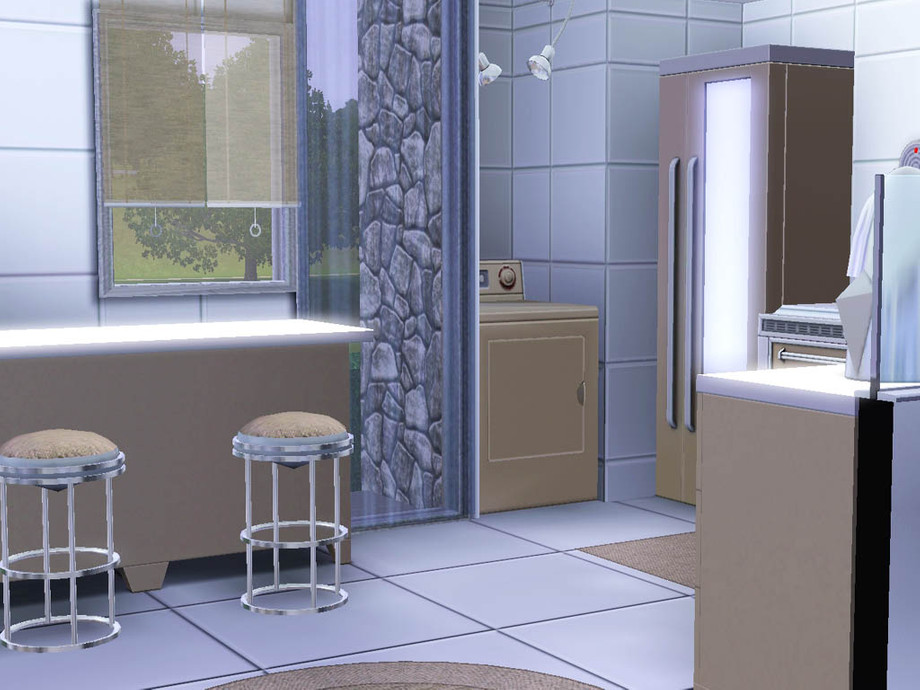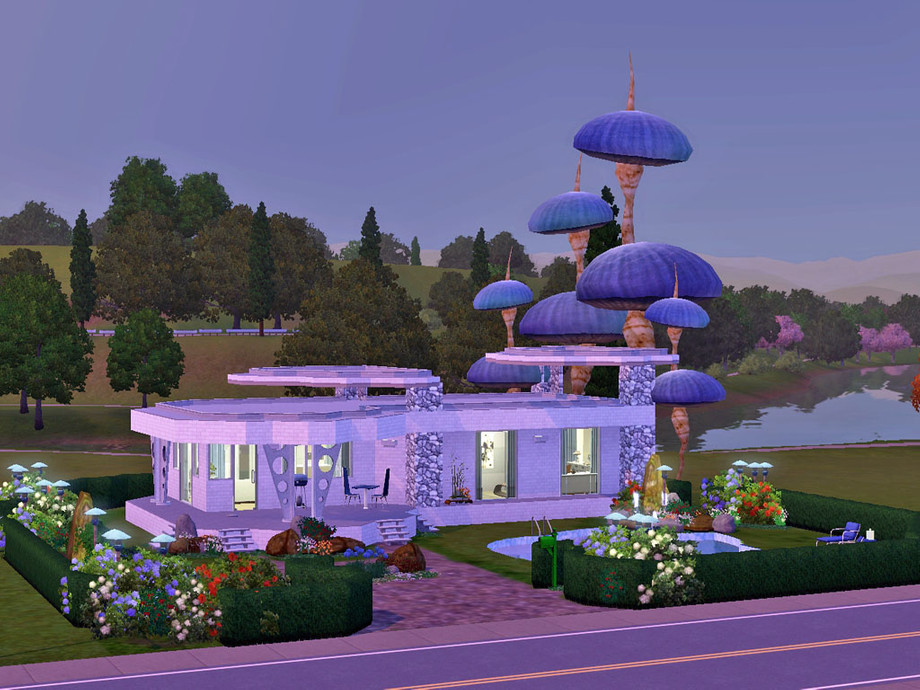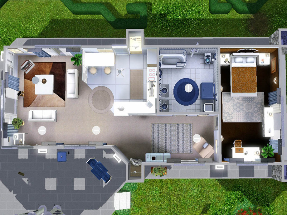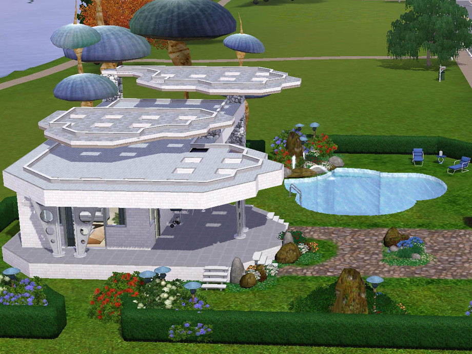 Aerius is a perfect house for one or two working sims loving to invite friends for garden parties. It features 1 bedroom, 1 bathroom with laundry machines, a kitchen and a living room and gets all the necessary objects to improve their skills and have a lovely relaxing time. There is a pool and a hot tub in the garden and oops it seems I am not able to build something serious :D