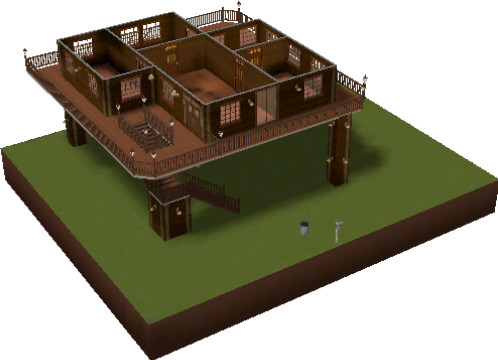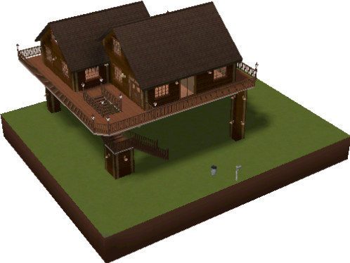 It's back to basics with this simple yet comfortable log home - built with a tree house in mind. It also brings to mind a cabin high up in the mountain forest or overlooking the beauty of a river from it's wrap around balcony. The Outdoor type Sim will simply love this home