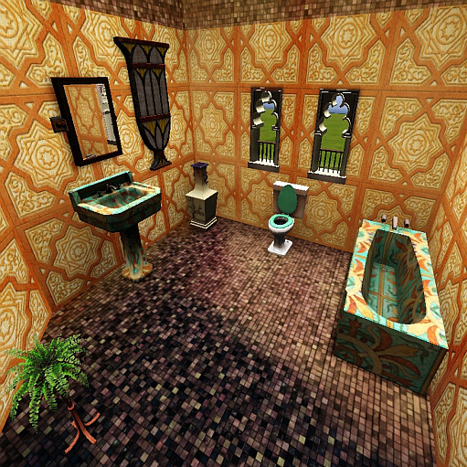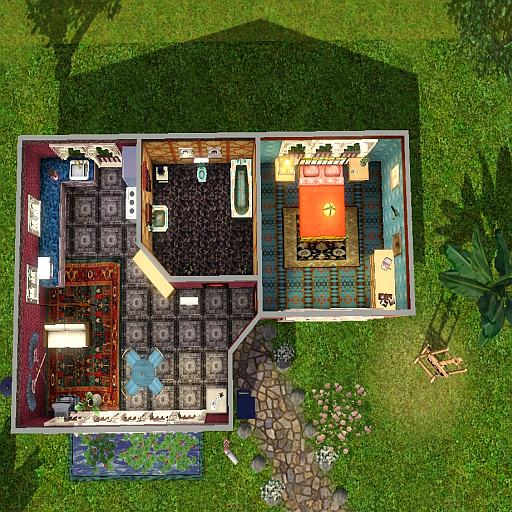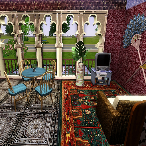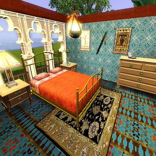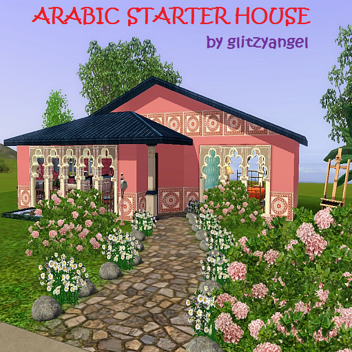 Here is my Arabic Starter House. One bedroom for a couple or single sim, bathroom, kitchen, and living room. Lot of space in garden to extend house in the future. I used some custom content. They are sims3pack so you will see it in the game.