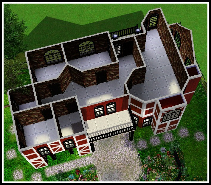 My first attempt at a barn! I'm not exactly sure how common "red" barns are now (I think it's officially stereotypical to say that barns are red) but I still love the fact that in stories and fairytales there is usually a RED barnyard! There is a beautiful garden awaiting when you approach the front door and a fabulous blended staircase in the backyard to help you make it up to the second floor. The rooms are fairly spacious and the pond is fully fish-able! I really hope you like this! :)